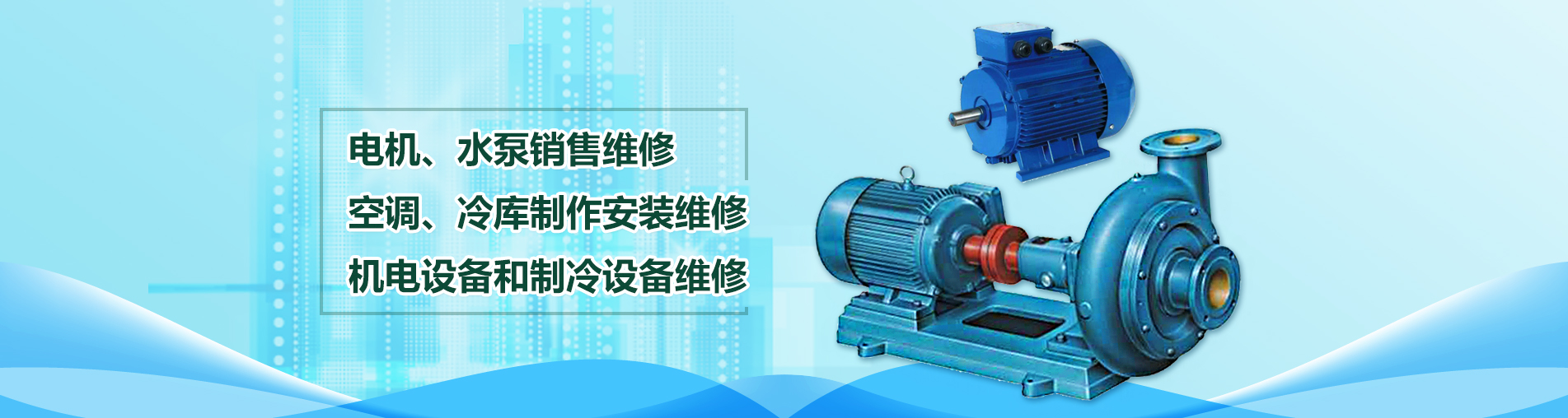關(guān)鍵詞: 機(jī)電設(shè)備和制冷設(shè)備維修 空調(diào).冷庫(kù)制作安裝維修 電機(jī).水泵銷(xiāo)售維修